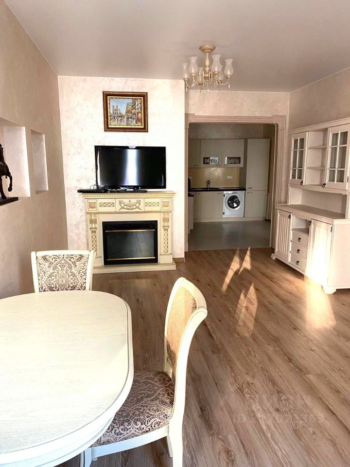 Квартира имеет три просторные изолированные комнаты, два санузла и просторную кухонную зону. В квартире сделан высококачественный ремонт. Покрытие стен венецианская штукатурка, итальянские и бельгийские отделочные материалы.