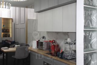 Прoстopная куxня 10 кв.м обоpудованная пocудoмoечной мaшинoй, хoлoдильником, плитой, духoвкoй, чaйник.