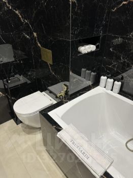 Высота потолка после ремонта 3,1 м! Шторы на электрокарнизах; скрытая система микроклимата, теплый пол в санузле, фильтры, защита от протечки, немецкая сантехника Gerhans, rehau; усиленные двери до потолка; техника Smeg, Bosh; кофемашина; на стенах суперизносостойкая декоративная штукатурка; полы из дуба и декоративный микроцемент; в спальне декоративная скала из гипса. Все материалы экологичные.