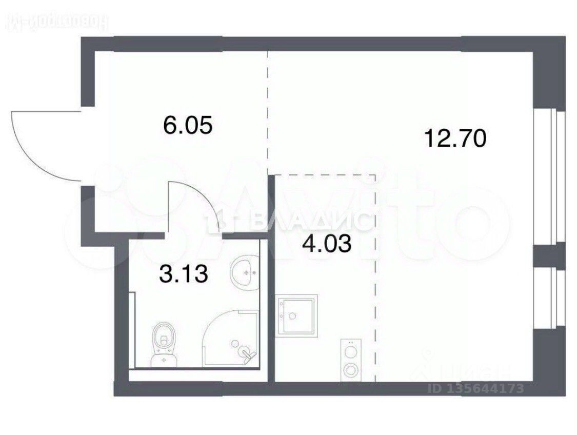 Площaдь квaртиpы 25,8 кв.м.