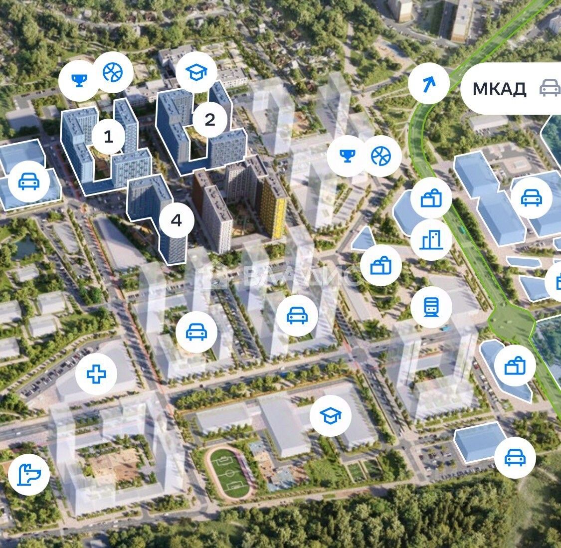 - В будущем прямо на территории проекта появится станция новой Рокадной линии метро — в 5 минутах ходьбы. В пешей доступности будет и остановка скоростного трамвая.