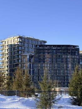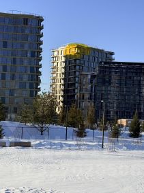 О квартале: роскошная архитектура от итальянского бюро, в каждом доме коворкинг, летняя терраса с потрясающим видом на воду, велопарковки, лапомойки, подземный паркинг с зарядками для автомобилей.