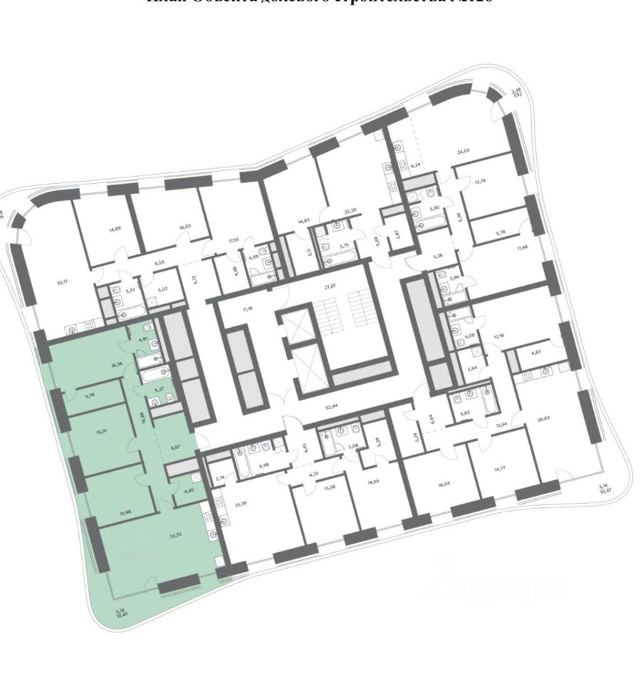 Планировка: кухня-гостиная 33,75 кв.м., жилая комната 12,98 кв.м., жилая комната 15,01 кв.м., жилая комната 16,74 кв.м., коридор 10,88 кв.м., прихожая 6,67 кв.м., санузел 4,81 кв.м., санузел 5,27 кв.м., гардеробная 5,78 кв.м., бельевая 4,45 кв.м., балкон (с коэф. 0,3) 3,14 кв.м.