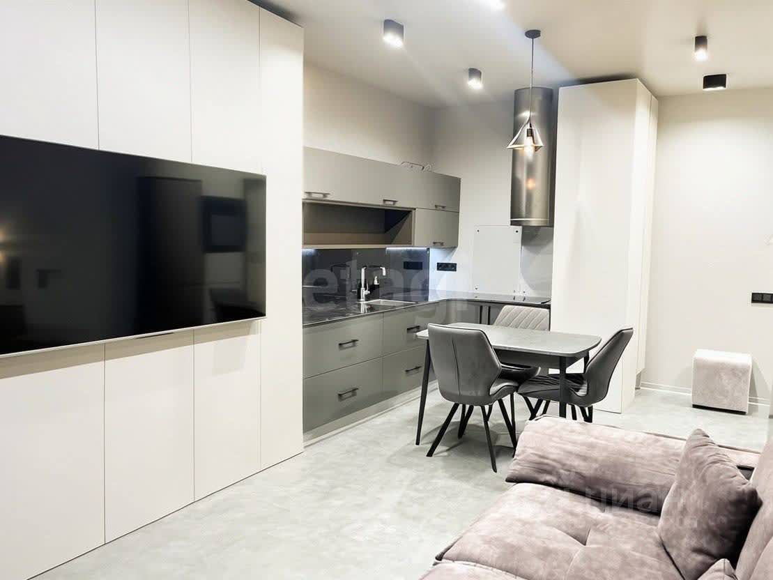 Кухня-гостиная 24 м, спальня 10 м, потолки 2,7 м не натяжные, пожарная сигнализация, датчик затопления, подогрев пола в ванной, скрытый полотенцесушитель, мастер - выключатель, столешница оргстекло, скрытые шкафы, двери скрытого монтажа, кондиционер.