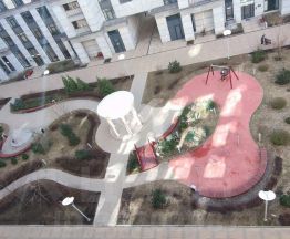 Архитектурный облик комплекса вдохновлен эстетикой советского ампира и выполнен в стиле, характерном для знаменитых московских высоток. На территории жилого комплекса реализован стильный ландшафтный дизайн, включающий фонтан, беседки и детский игровой комплекс. Для резидентов предусмотрена возможность использования функционального пространства, терраса на крыше с панорамными видами на город.