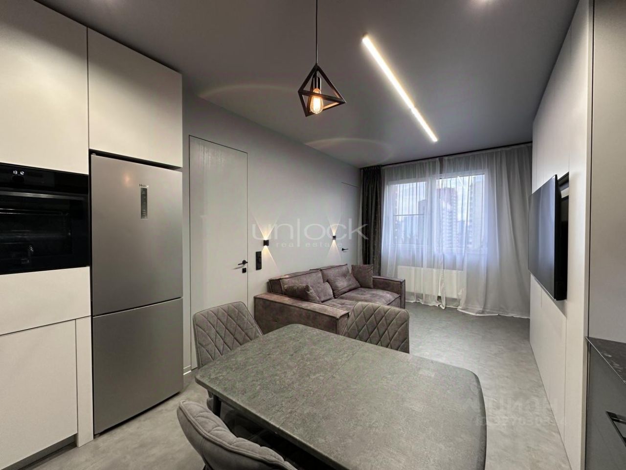 Квартира готова к проживанию, сделан дизайнерский ремонт, полностью укомплектована мебелью и техникой.