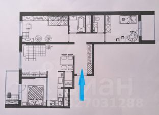 Общая площадь ~ 77 кв.м. (с учетом 2х балконов). Жилая ~ 54 кв.м. Кладовая ~ 1.5 кв.м.