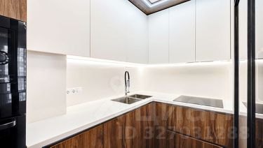 * Кухня-гостиная = 22.6 кв.м. - ВСТРОЕННЫЙ кухонный гарнитур со всей необходимой техникой (вкл. ПОСУДОМОЕЧНУЮ машину (60 см.), холодильник, СВЧ, духовой шкаф, ИНДУКЦИОННУЮ варочную панель) под ЕДИНОЙ столешницей (искуственнный КАМЕНЬ, БОЛЬШАЯ рабочая зона с подсветкой по периметру); столовая (обеденный стол, стулья) и зона отдыха (мягкий раскладной диван напротив ЖК-телевизора), КЛАДОВАЯ;