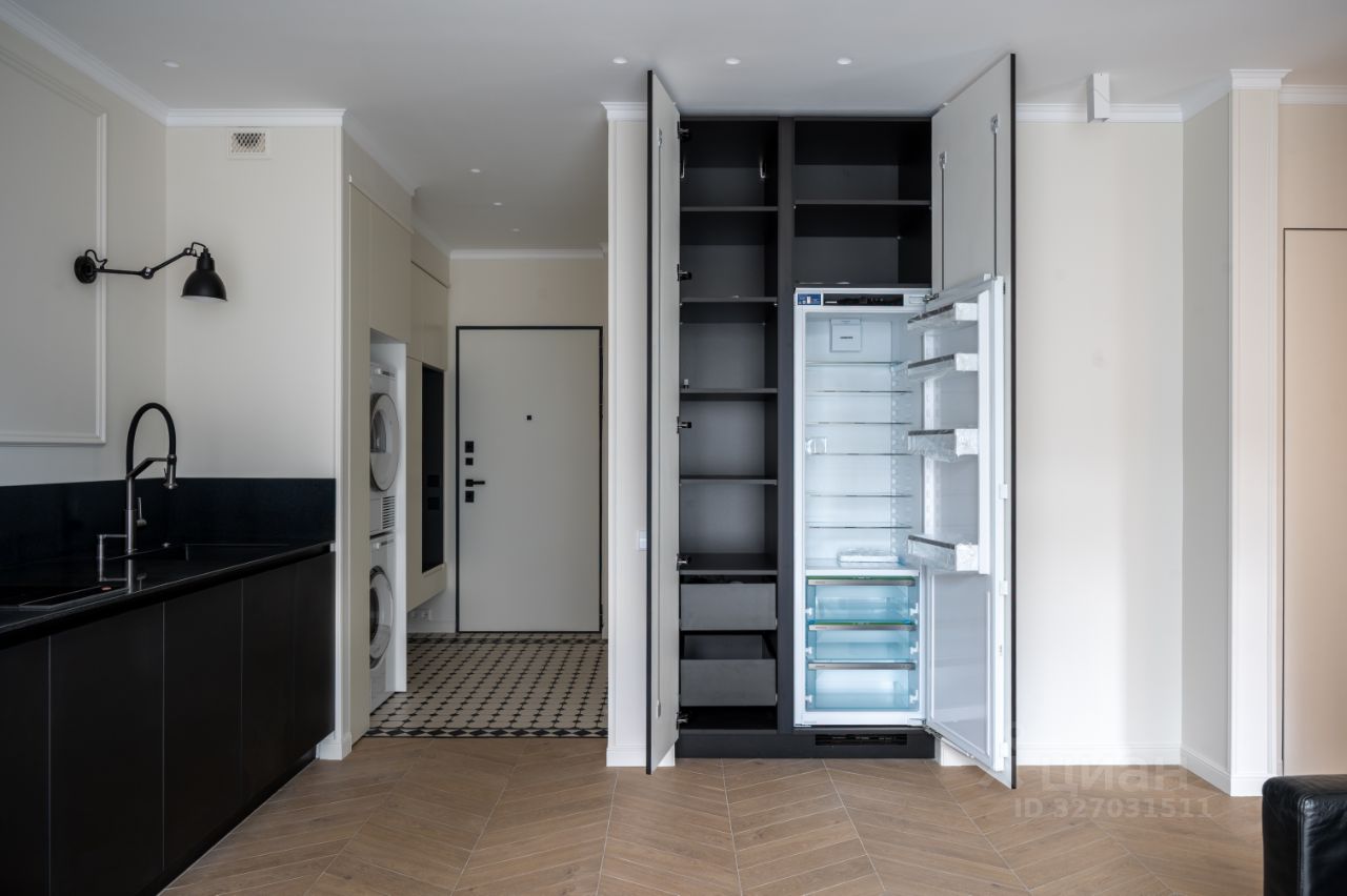 Функциональная кухня-гостиная со всей современной встроенной техникой, включая измельчитель пищевых отходов - Omokiri и фильтр обратного осмоса Атолл.