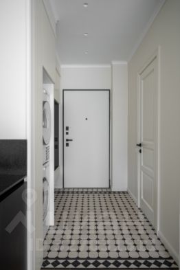 Прихожая продумана до мелочей: встроенная система хранения, в которой скрыты не нарушающие эстетики стиральная и сушильная машины Asko.