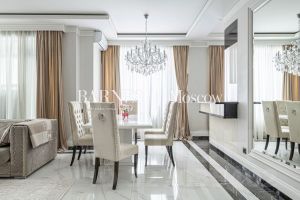 Кухня оснащена техникой Miele — выбором гурманов и ценителей надежности. За сохранность продуктов отвечает вместительный холодильник Liebherr. Санузлы от Villeroy & Boch (керамика премиум-сегмента) радуют безупречной геометрией и качеством. По-настоящему дорогой ремонт заметен в мелочах: система теплых полов проведена не только в санузлах и коридорах, но и на кухне, в гостиной и даже в душевой кабине. Это значит, что вы никогда не столкнетесь с холодной плиткой.