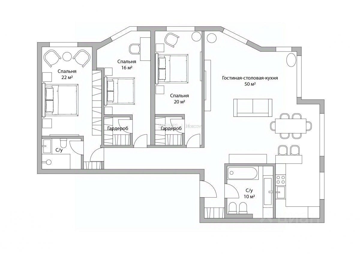 В квартире три изолированные спальни. Две из них оборудованы собственными гардеробными, а мастер-спальня — это личные апартаменты с приватным санузлом, где вас ждет только комфорт и уединение.
