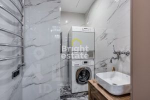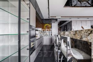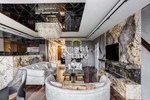 Интерьер выполнен по авторскому дизайн-проекту с использованием благородных натуральных материалов. Полы из американского ореха подчеркивают глубину и теплоту пространства, итальянский керамогранит и мрамор формируют элегантную, сдержанную основу. Просторная кухня-гостиная с биокамином объединяет зону отдыха, столовую и кухонный остров, становясь естественным центром притяжения для семьи и гостей. Панорамные окна наполняют квартиру светом и открывают выразительные виды на город.