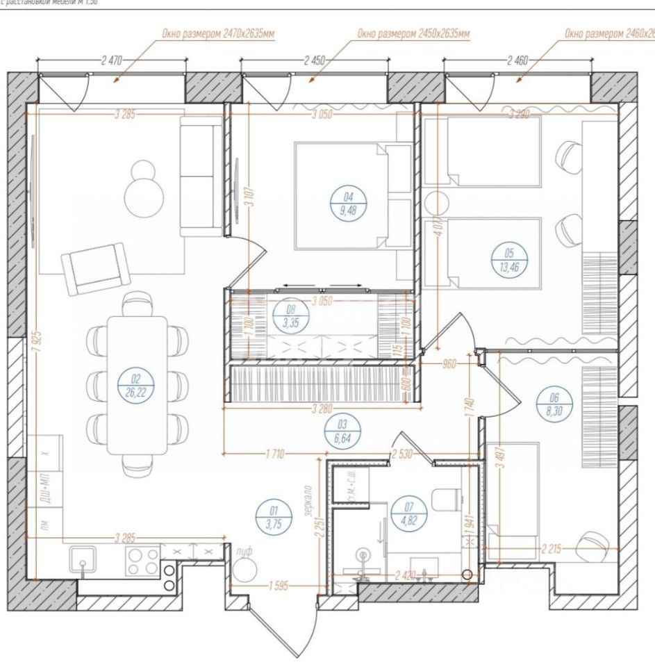 *кухня-гостиная + 2 изолированные спальни