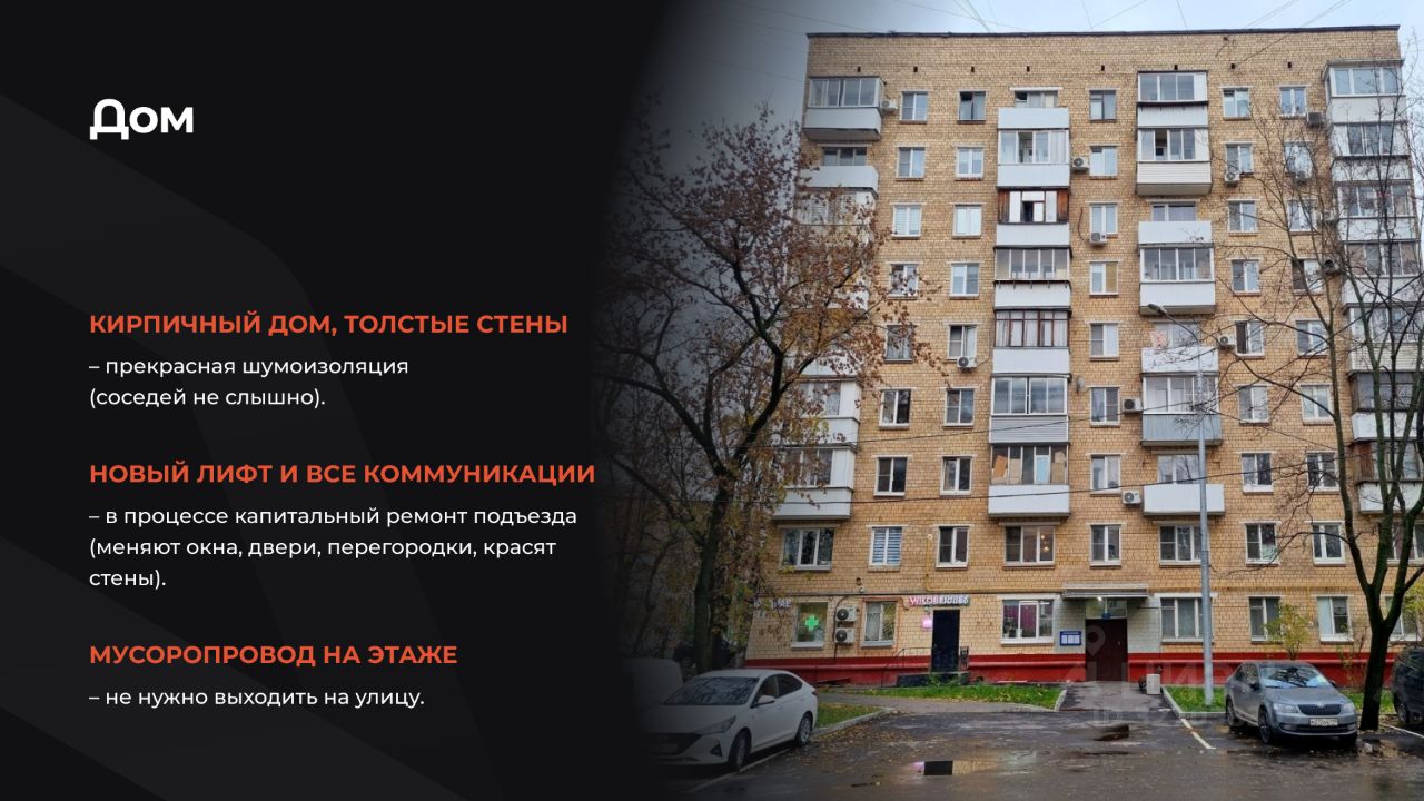 Новый лифт и все коммуникации, в процессе капитальный ремонт подъезда (меняют окна, двери, перегородки, красят стены).