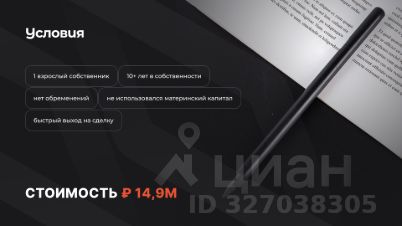 1 взрослый собственник, 10+ лет в собственности, нет обременений, не использовался материнский капитал. Быстрый выход на сделку.