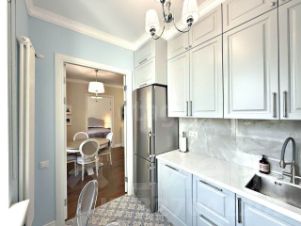 Кухонный гарнитур со встроенной техникой, встроенные системы хранения. Часть мебели — по договорённости.