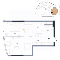 Общая площадь51,1 м²