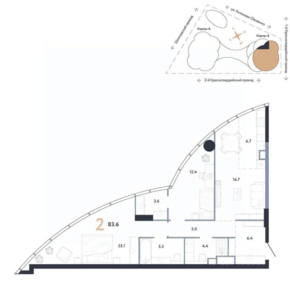 Общая площадь83,6 м²