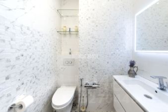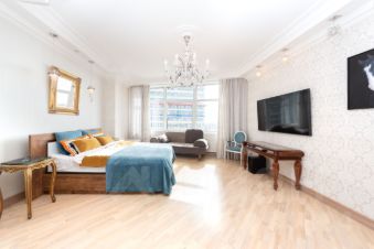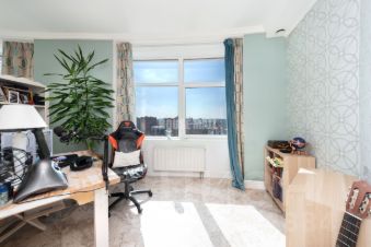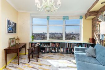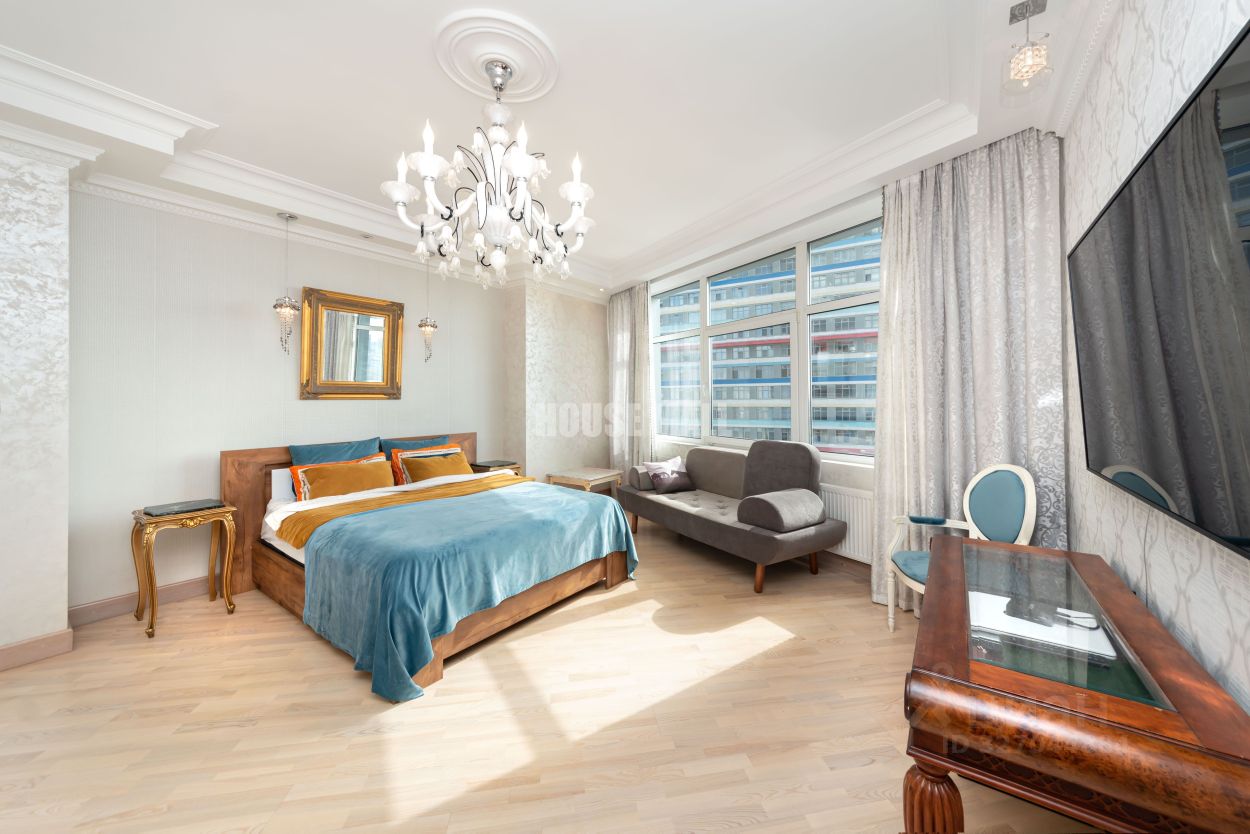 Предлагается продажа видовой квартиры, площадью 128 м², расположенной на 14 этаже 58-этажного жилого дома. Квартира располагает 4 окнами, 2 солнечными спальнями, просторной кухней-гостиной 35 м², 2 просторными санузлами и 2 гардеробными.