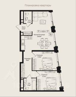 - Просторные 64.8 кв.м., с кухней-гостиной 24,4 кв.м. и дополнительным окном, что при желании позволит спланировать полноценную трехкомнатную квартиру