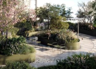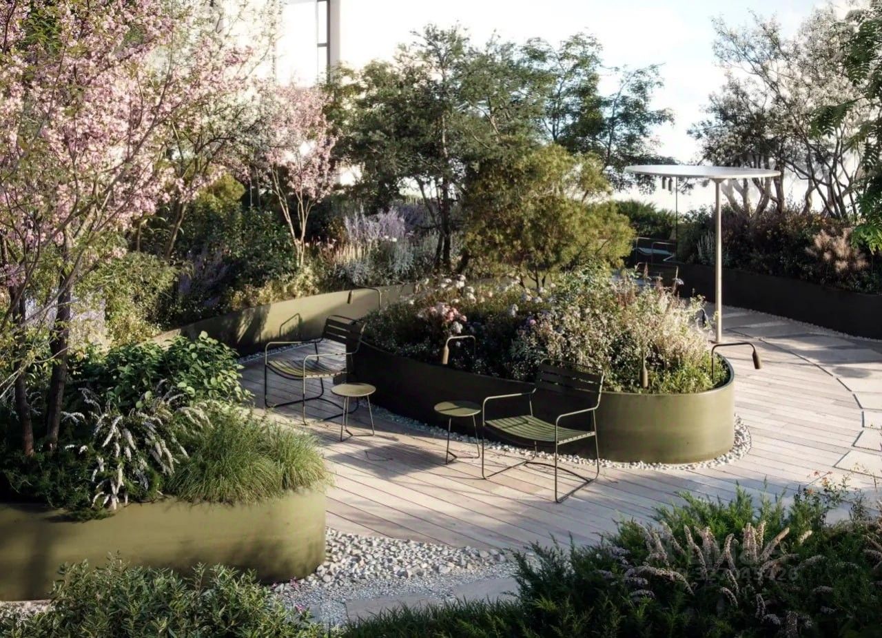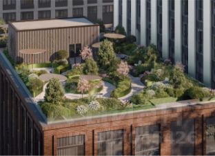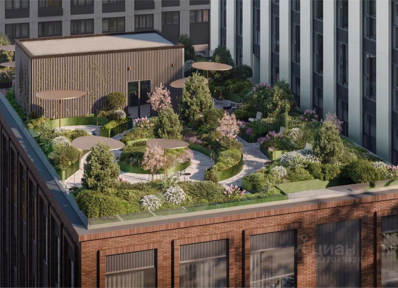 - На крыше одного из зданий появится терраса с зонами для общения и уединения, в которых можно поработать, заняться йогой под навесом или настольными играми