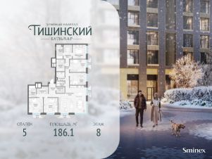Общая площадь квартиры - 186.10 кв.м.