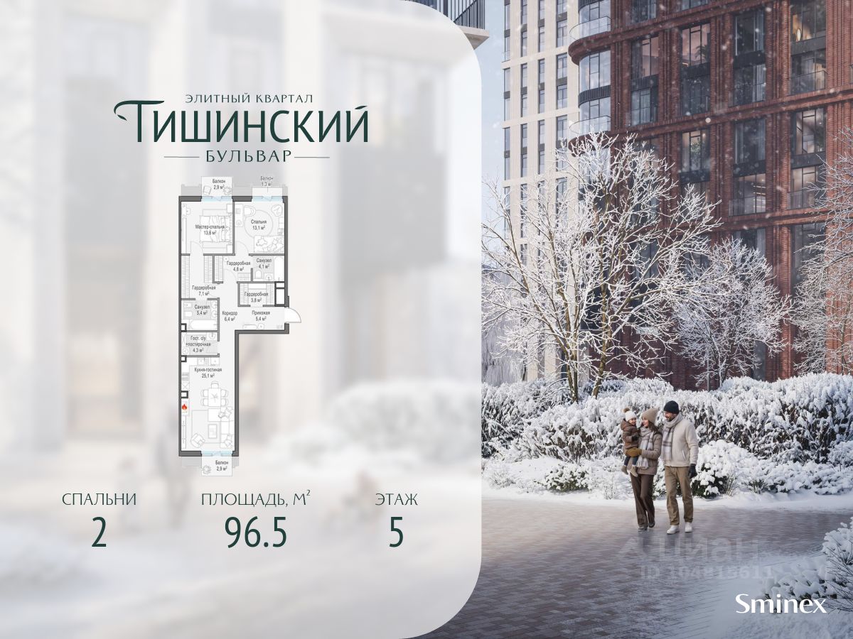"Тишинский бульвар" - тихий зелёный элитный квартал на Тишинке, в престижном и комфортном районе центра Москвы. В нём создан уникальный для элитного дома прогулочный бульвар в своём огромном парке 1,9 га. В парке оборудованы зоны для активного и тихого отдыха, крытые галереи, приватные зелёные комнаты, многофункциональная спортивная площадка, воркаут-зона, детская площадка, сухой фонтан, ручей.