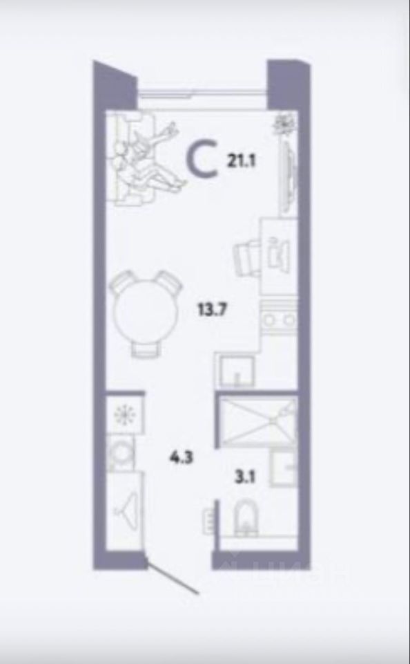 Студия сдается с чистовой отделкой от застройщика - описание см. фото.