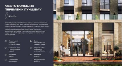 Квартира-студия с московской пропиской в пешей доступности от м. Перерва (D2) и м. Марьино. ЖК Комфорт класса, монолитные дома переменной этажности с подземными паркингами, закрытый двор. В районе застройки уже есть вся необходимая инфраструктура.