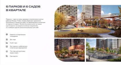 В ЖК собственные социальные объекты (школа, детский сад) и благоустроенная территория в концепции 6 парков и 6 садов. Срок сдачи: Первая очередь — I квартал 2028 года.