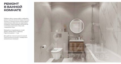 Отделка санузла "Мрамор", цвет окраски стен в студии "Белый камень".