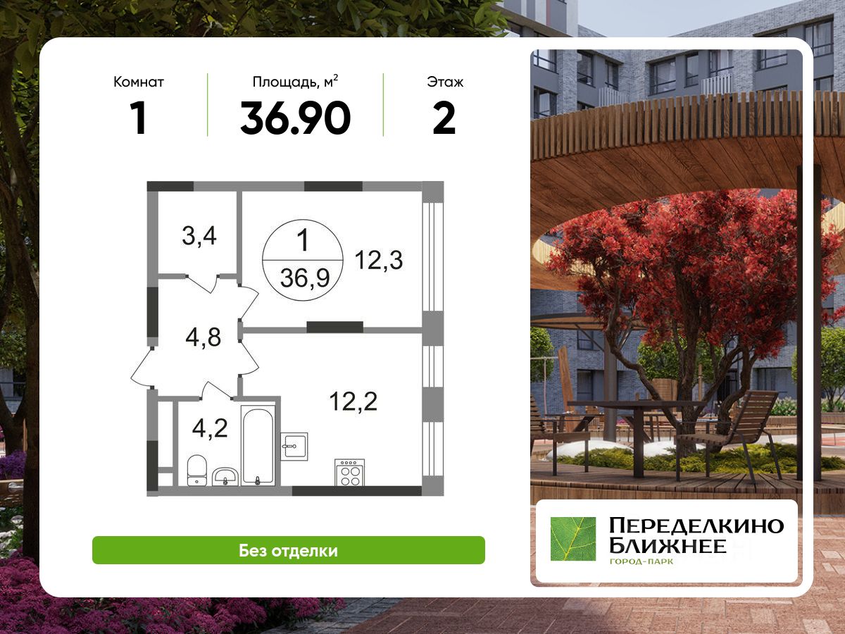 Продается однокомнатная квартира без отделки в 18 фазе города-парка "Переделкино Ближнее".