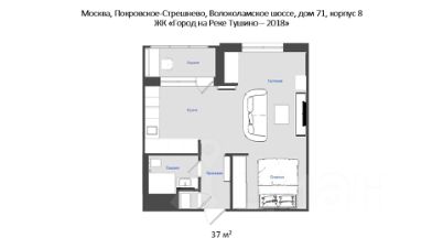 Стильная квартира 37 м² на комфортном 4 этаже 25-этажного монолитного дома в жилом комплексе "Город на Реке Тушино-2018", расположенном в окружении парков, в пешей доступности от станции метро "Спартак".