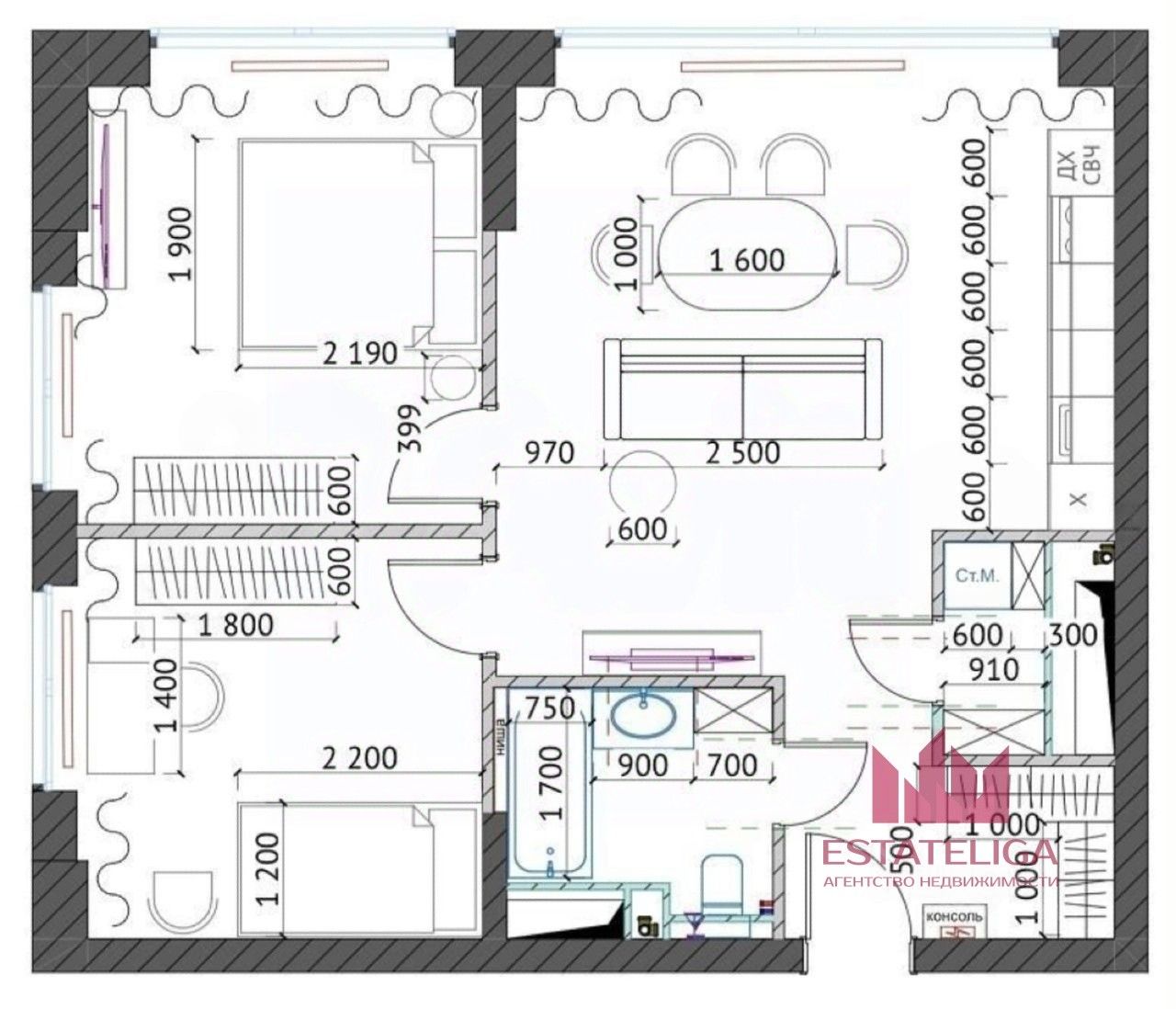 Продается просторная трехкомнатная квартира 65,9 м² с дизайнерским ремонтом и мебелью премиум-класса. Планировка включает кухню-гостиную с широкоформатными окнами и видом на зеленый променад, две изолированные спальни, санузел с ванной, постирочную/гардеробную и холл с вместительными шкафами. Высота потолков 3 м, работают 6 лифтов.