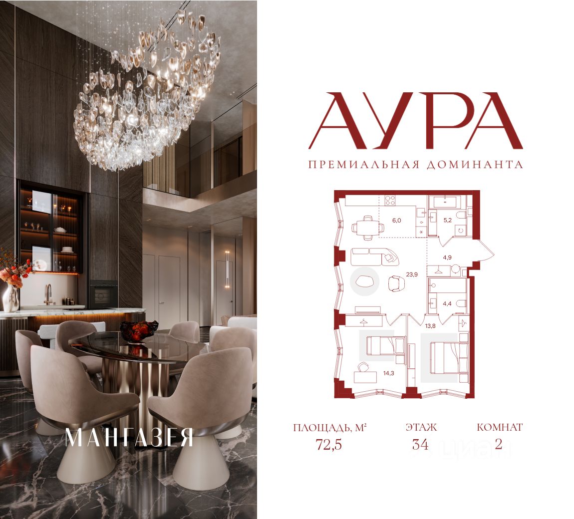 АУРА новая премиальная доминанта Москвы в 10 минутах от Садового кольца. Проект состоит из 42-этажной Бронзовой башни и 41-этажной Серебряной. Рядом набережная Москвы-реки, Даниловский рынок, музеи и галереи, престижные школы и вузы.