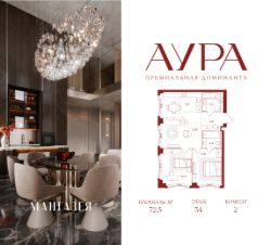 2-комнатная квартира площадью 72,5 м2.