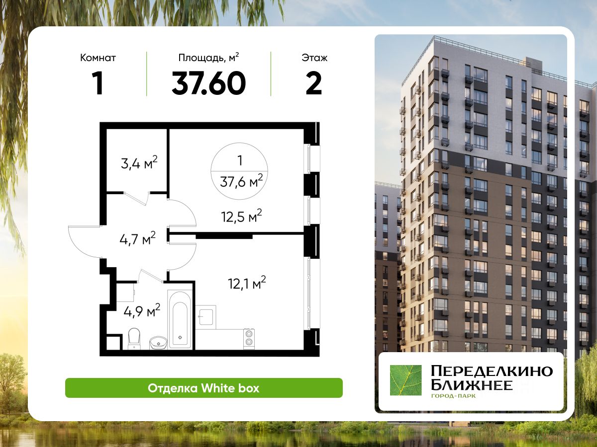 Продается однокомнатная квартира без отделки в городе-парке "Переделкино Ближнее".