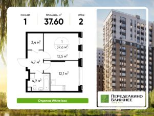 Общая площадь квартиры - 37,6 кв. м, этаж 2 из 17.