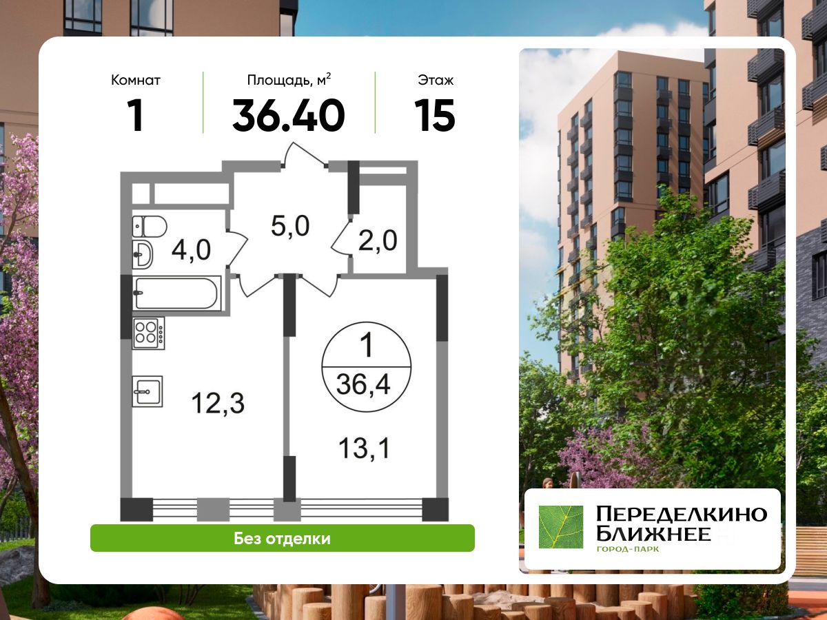 Продается однокомнатная квартира без отделки в городе-парке "Переделкино Ближнее".