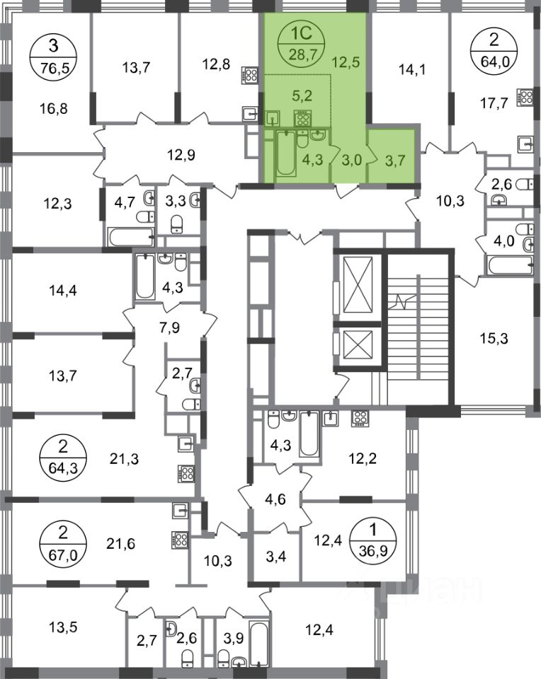 - в каждой секции - 2 лифта: 1 пассажирский, 1 грузовой