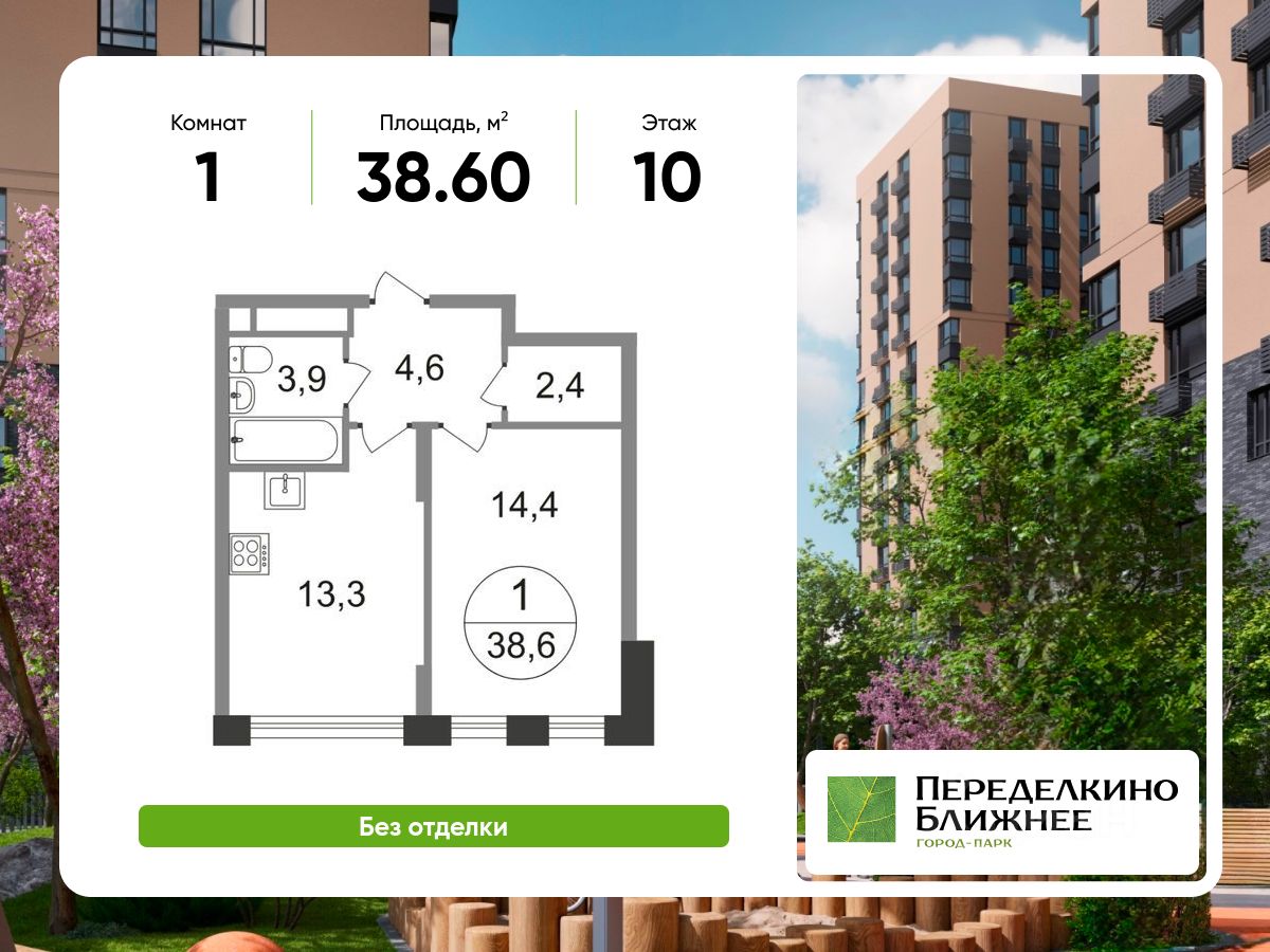 Продается однокомнатная квартира без отделки в городе-парке "Переделкино Ближнее".