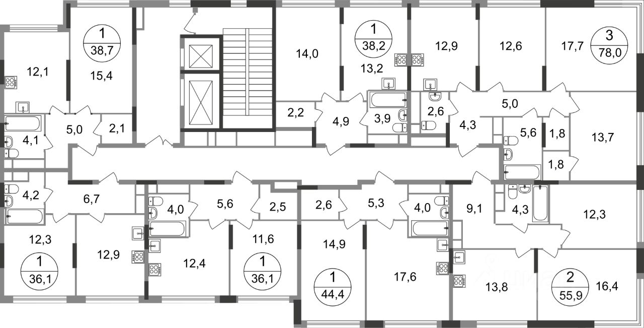 - коммерческие помещения на 1 этаже