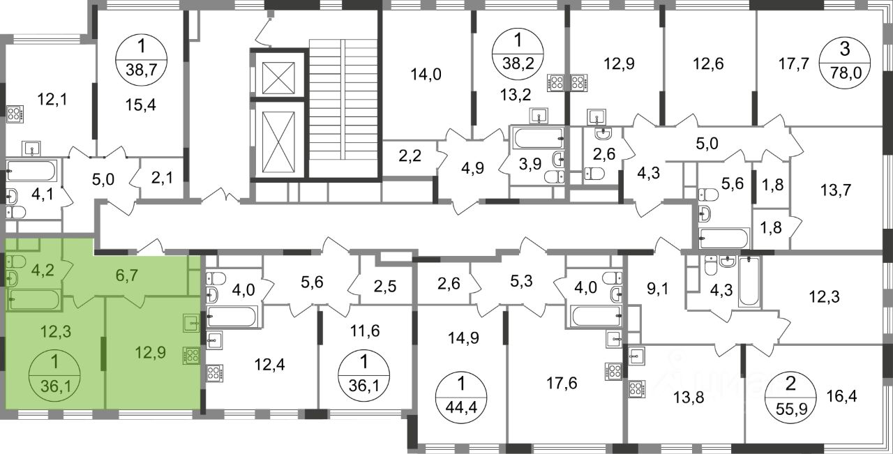 - коммерческие помещения на 1 этаже