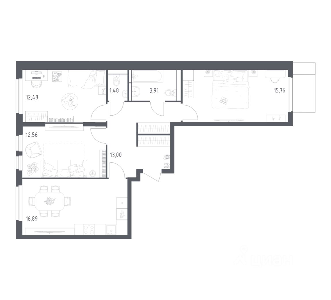 Строим кварталы для жизни с заботой о будущем. Предлагается 3-комнатная квартира комфорт-класса площадью 75,1 кв.м в корпусе 17 на 14-м этаже, в жилом комплексе "Остафьево".