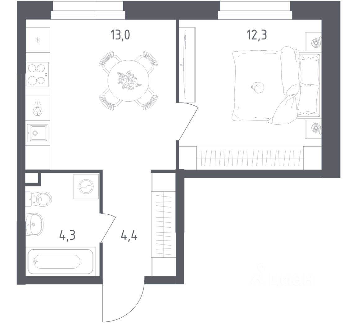 А если не хочется тратить время на ремонт, можно выбрать опцию — с отделкой. Перед тем как отдать ключи, застройщик установит натяжные потолки, поклеит обои под покраску, положит ламинат светлых тонов, а в санузлах — керамическую плитку и керамогранит.