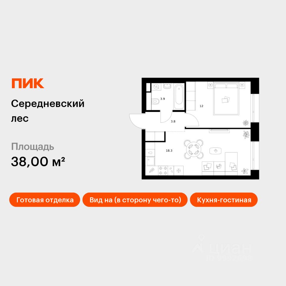 Продаётся 1-комн. квартира площадью 38 кв.м на 13 этаже 16 этажного дома (Корпус 2.1.2, Секция 2) проекта ПИК Середневский лес. Светлый просторный подъезд на уровне земли, функциональная планировка, большие окна, c отделкой.