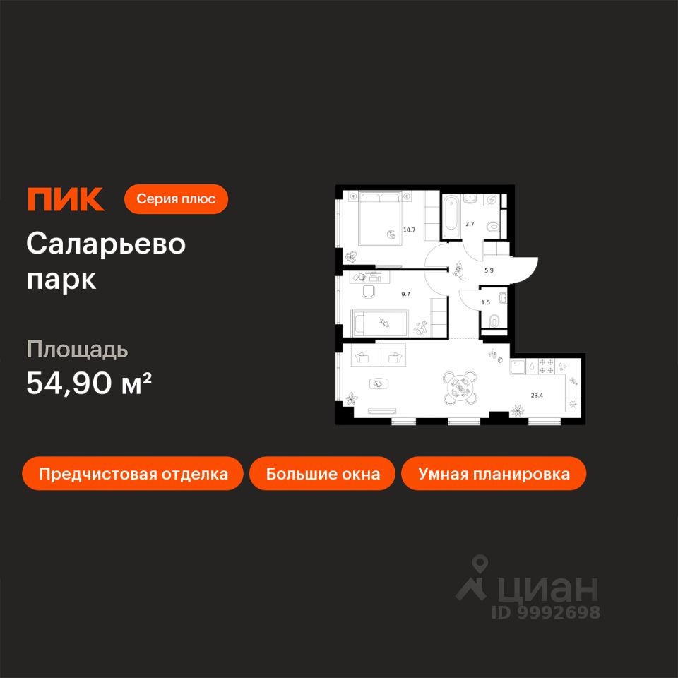Продаётся 2-комн. квартира площадью 54,9 кв.м на 17 этаже 24 этажного дома (Корпус 82.4, Секция 4) проекта ПИК Саларьево парк. Светлый просторный подъезд на уровне земли, функциональная планировка, большие окна, предчистовая отделка.