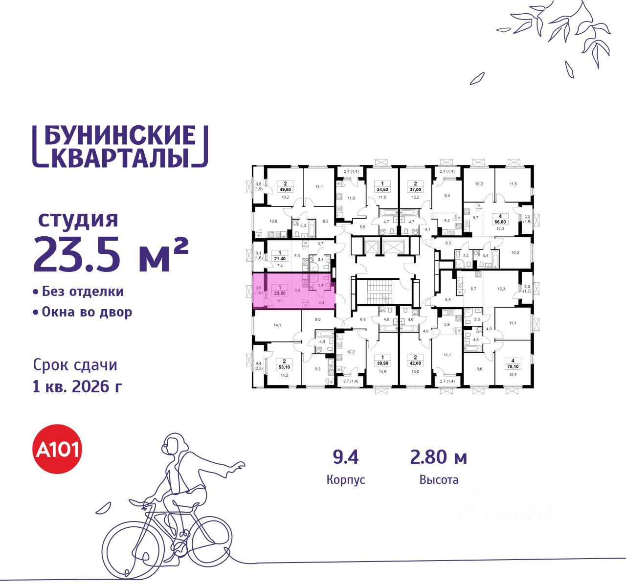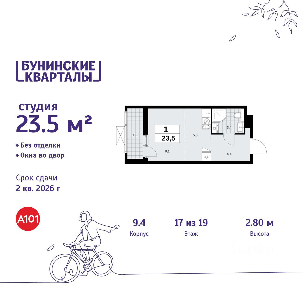 Продается студия 983 в новостройке ЖК "Бунинские кварталы" по адресу Москва, ТиНАО, Новомосковский АО, Сосенское С/П, жилой комплекс Бунинские Кварталы, 9.4, район Коммунарка, Новомосковский административный округ, Москва. Общая площадь квартиры - 23.50 кв. м., этаж 17 из 19, секция 10. Тип проекта, по которому построен дом - монолит, компания-застройщик - ООО "А101". Стоимость квартиры - 9454990 Р. Срок сдачи - 1 квартал 2026.