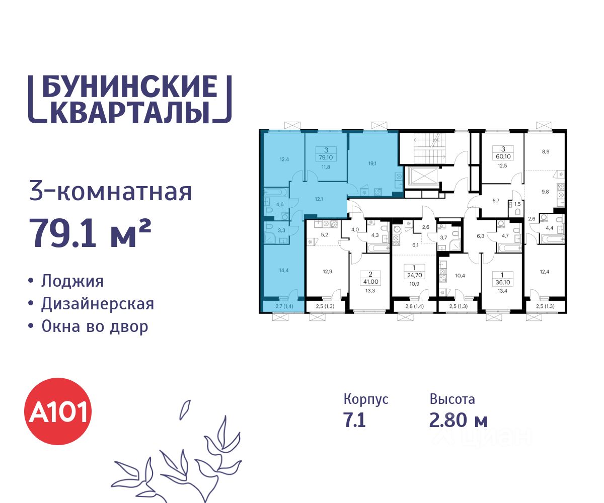 Продается трехкомнатная квартира 379 в новостройке ЖК "Бунинские кварталы" по адресу Москва, ТиНАО, Новомосковский АО, Сосенское С/П, жилой комплекс Бунинские Кварталы, 7.1, район Коммунарка, Новомосковский административный округ, Москва. Общая площадь квартиры - 79.10 кв. м., этаж 8 из 9, секция 6. Тип проекта, по которому построен дом - монолит, компания-застройщик - ООО "А101". Стоимость квартиры - 27490414 Р.